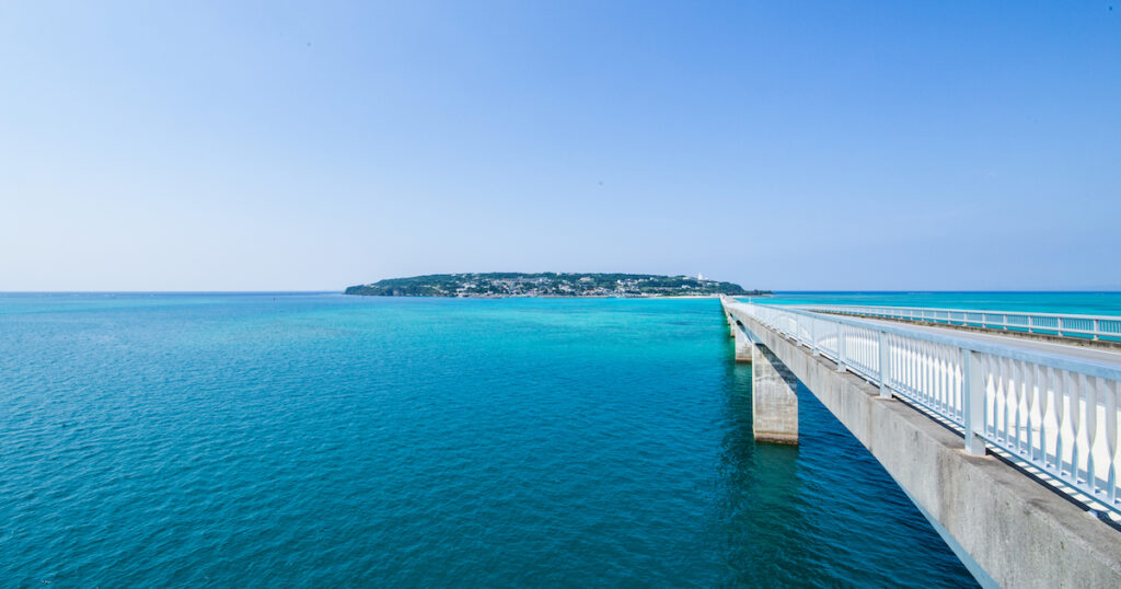有名な古宇利大橋を渡った先にある離島。エメラルドグリーンの海とハートロックが人気。古宇利大橋を渡るドライブは最高の爽快感です。