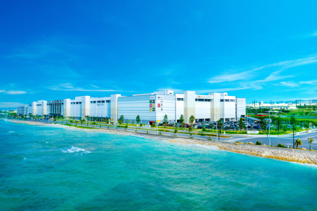 サンエー浦添西海岸パルコシティはうちなんちゅに大人気の大型ショッピングモールですが、実は建物の目の前には一面海が広がっており、地元の方も海を眺めながら思い思いの時間を過ごしている絶景スポットです。2階のフードコートからも海を一望できるため、お子様づれのファミリーにもおすすめです。