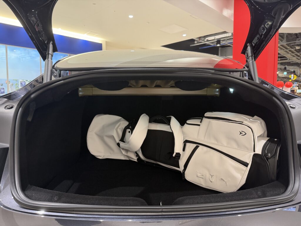 ゴルフ旅で気になる積載量も、テスラ モデル3は十分な余裕を備えています。
